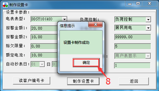 當(dāng)系統(tǒng)提示“設(shè)置卡制作成功”就可以把讀卡器里面的卡拔出來(lái)了,標(biāo)記上“設(shè)置卡”。(“設(shè)置卡”是通用的,三相四線1.5-6A外接互感器的電表類(lèi)型除外)