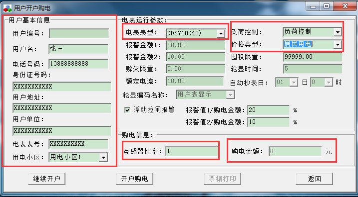 重新插張新卡到讀卡器,以上信息都根據(jù)自己要求設(shè)置好之后,單擊“開(kāi)戶(hù)購(gòu)電”。出現(xiàn)以下畫(huà)面。