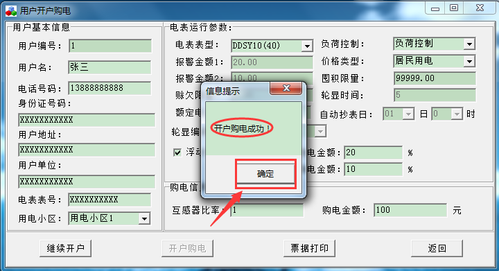 系統(tǒng)提示“開(kāi)戶(hù)購(gòu)電成功” 單擊“確定”,就開(kāi)戶(hù)完成了。