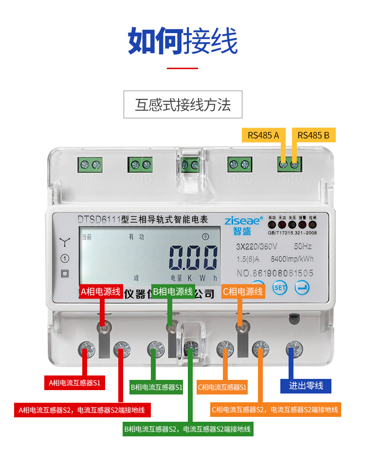 導軌式電表可分為單相導軌式電表和三相三相導軌式電表,單相一般家用,三相一般在工廠或負載比較大的環境中用。一般的單相電表有6個孔,其中兩個小孔用于通訊,三相表孔數更多。在低電壓、小電流(100安以下)的情況下,電能表可直接接入電路進行測量。在高電壓或大電流的情況下,電能表不能直接接入線路,需配合電壓互感器或電流互感器使用。