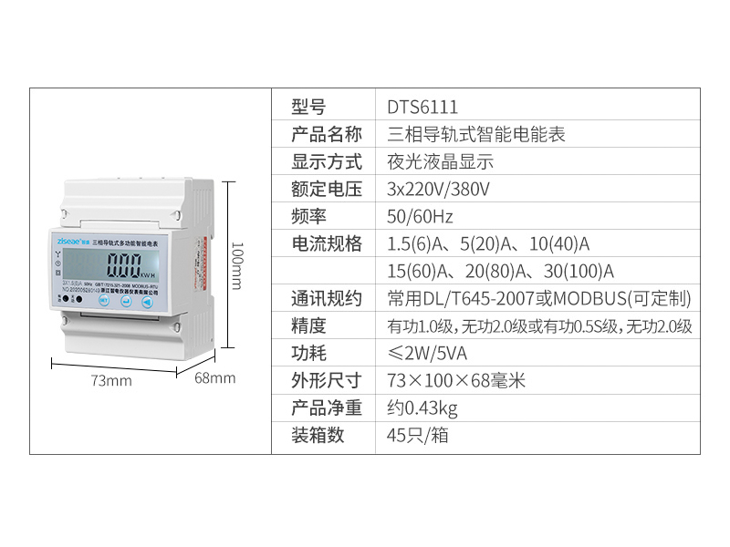 導(dǎo)軌式安裝電能表具有體積小巧、精度高、可靠性好、安裝方便等優(yōu)點(diǎn),性能指標(biāo)符合國標(biāo)GB/T 17215、GB/T 17883和電力行業(yè)標(biāo)準(zhǔn)DL/T614對(duì)電能表的各項(xiàng)技術(shù)要求,適用于政府機(jī)關(guān)和大型公建中對(duì)電能的分項(xiàng)計(jì)量,也可用于企事業(yè)單位作電能管理考核。