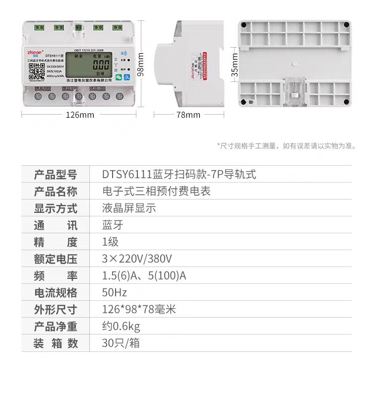 型號:藍(lán)牙掃碼電表,導(dǎo)軌式藍(lán)牙掃碼電表,三相導(dǎo)軌式藍(lán)牙掃碼充值電表