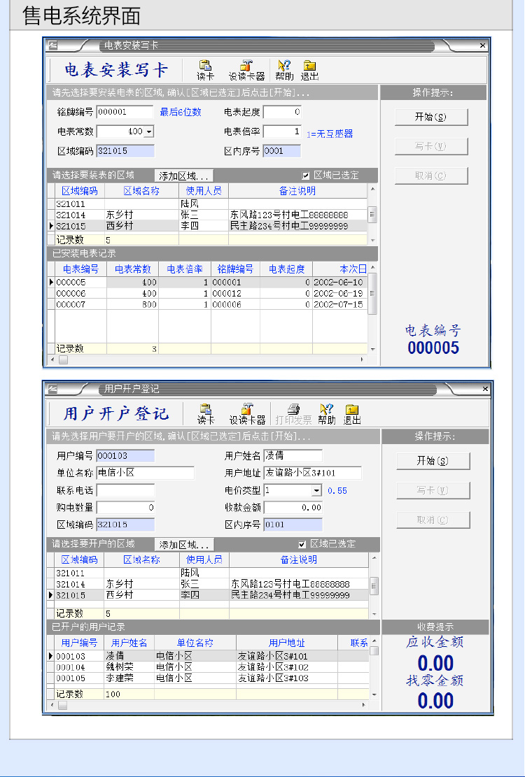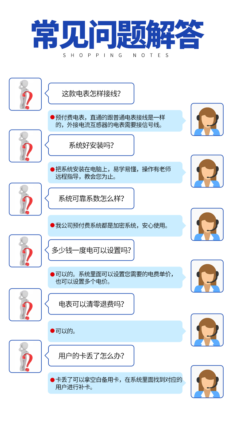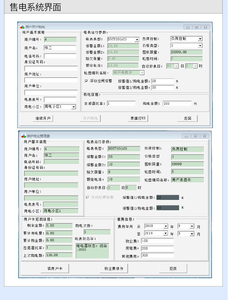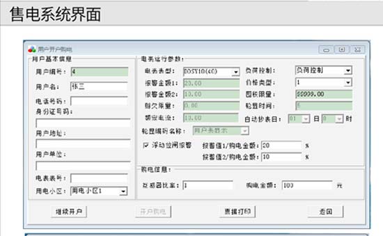 7、購(gòu)電方式:售電時(shí),將IC卡插入IC卡讀寫器,同時(shí)操作計(jì)算機(jī),將用戶編號(hào)、預(yù)購(gòu)電量、報(bào)警電量、限容方式及限容功率等加密寫入IC卡。