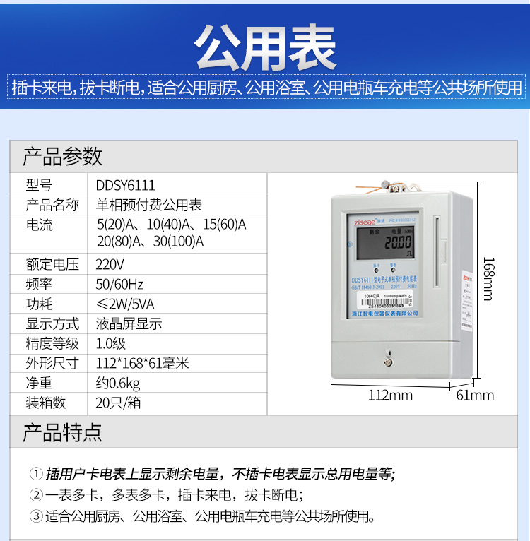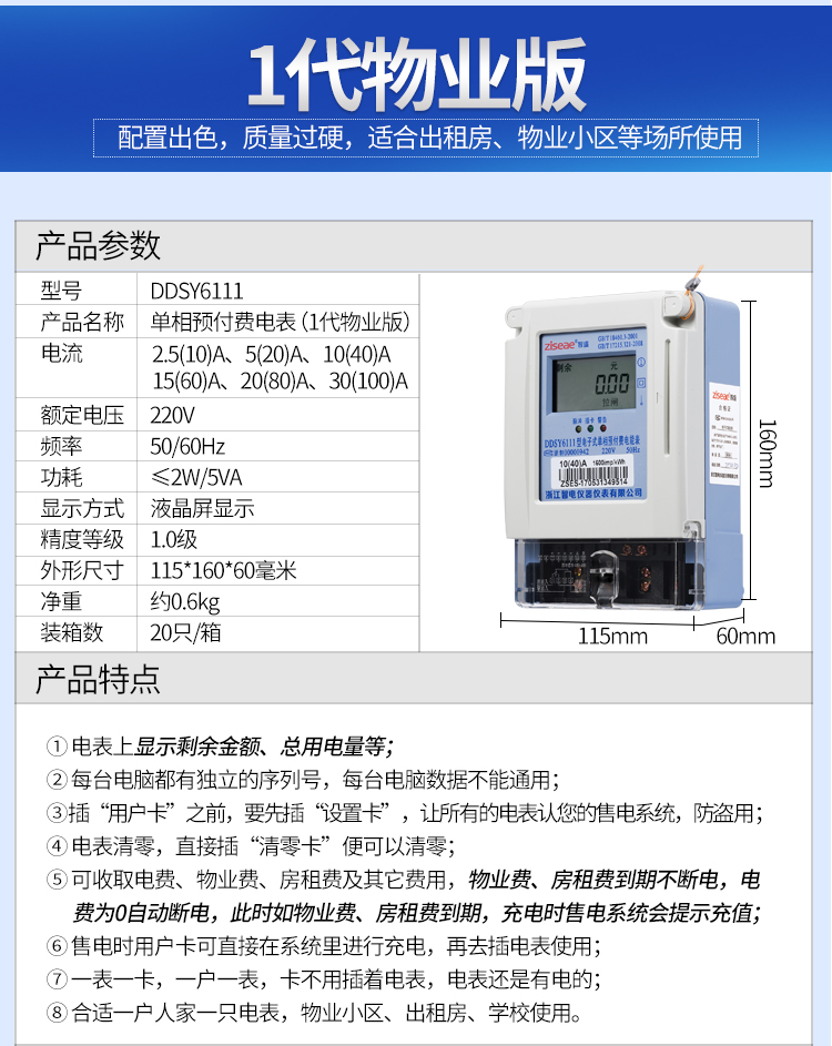 主要特點(diǎn):應(yīng)用計(jì)算機(jī)管理,先購(gòu)電后用電;在額定電流范圍內(nèi)能限制使用功率(由供電部門限定);一表一卡,專卡專用,失卡不失電,補(bǔ)卡再用;電卡能雙向傳遞數(shù)據(jù),能自動(dòng)斷電告警用戶購(gòu)電;電量為零時(shí),自動(dòng)拉閘斷電;并具有一定的防竊電軟件設(shè)計(jì)等。