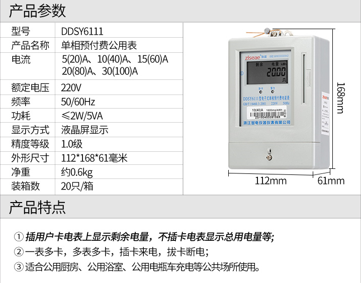 DDSY6111型電子式單相插卡預(yù)付費(fèi)電表,采用集成電路設(shè)計,全自動表面貼裝(SMT)生產(chǎn)工藝制造。電能表的線路設(shè)計和元器件選擇以較大的環(huán)境允差為依據(jù),可保證整機(jī)穩(wěn)定工作,精度高、高過載、低功耗,可靠性能高。內(nèi)置磁保持繼電器。通過控制繼電器實(shí)現(xiàn)控制負(fù)載的通與斷,實(shí)現(xiàn)督促用戶先買電后用電的功能。