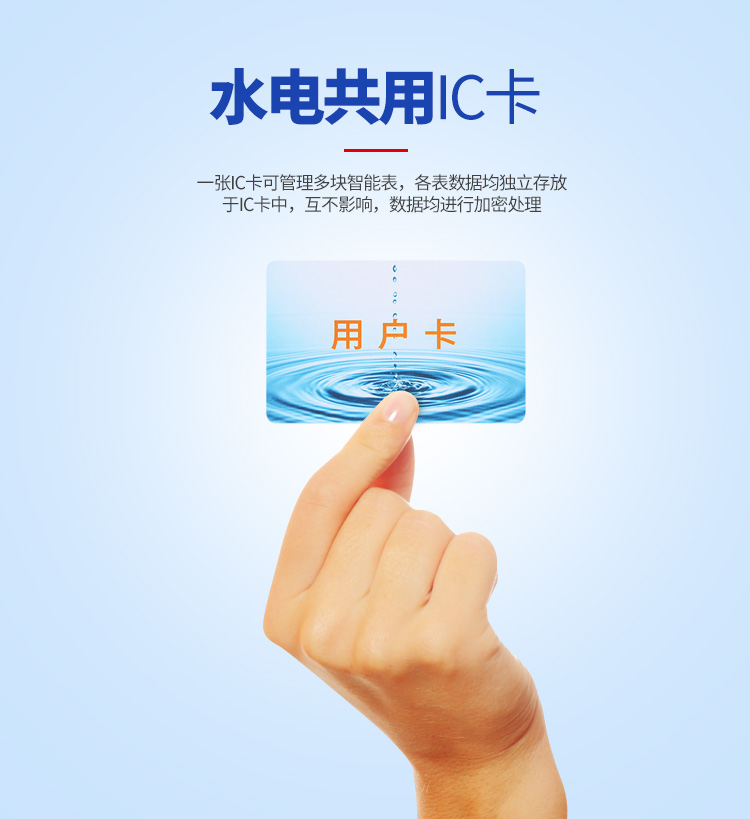 我公司生產(chǎn)的智能水表與電能表實現(xiàn)一卡通,用戶只需一張卡,即可同時管理家中所用的電表、水表。